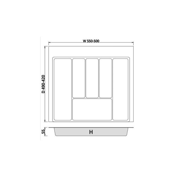 | Injection moulded cutlery trays Available in white or anthracite finishes Non-slip sound-deadened cutlery compartments Conveniently placed width indicators and cut lines for flexible modules 55mm height |