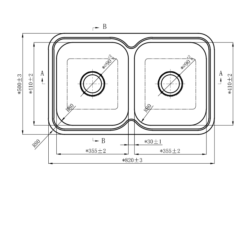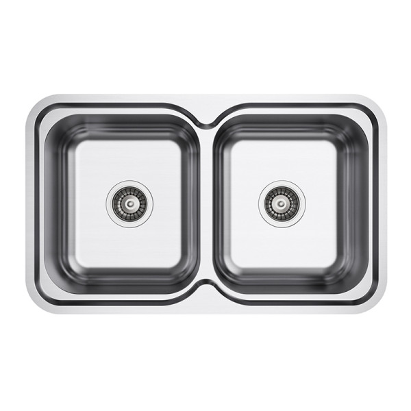 | The classic bowl and drainer range offers single and double bowls in both left and right hand configurations 0.8mm 304 Grade Stainless Steel Fan Drainer Silk finish 2x 20L Main Bowl 80mm corner radius 90mm round basket waste included |