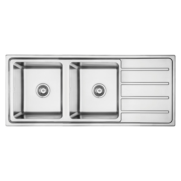 | The newest addition to the bowl and drainer line, the Everglades Range is a modern and stylish collection of sinkware 0.8mm 304 Grade Stainless Steel Laser edge Silk finish 2x 28L Main bowl with drainer 25mm corner radius 90mm round basket waste included |
