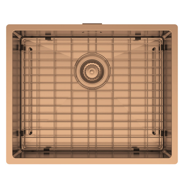| A stainless steel sink, the PVD range is coloured using one of the most environmentally friendly colouring processes for a very hard and durable coating. Available in Matt Black, Gun Metal, Copper and Brass with matching base grid 1.2mm 304 Grade Stainless Steel Hand fabricated with main bowl overflow Satin finish 10mm corner radius 90mm round basket waste included 20mm flat flange |