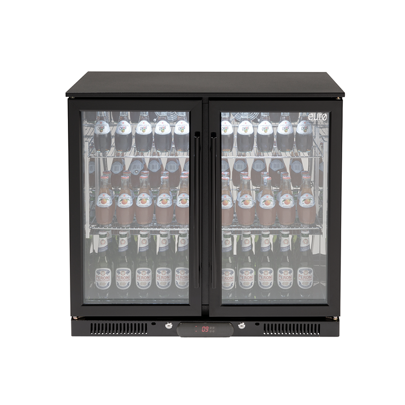 90cm 208L double glass door black beverage fridge.
