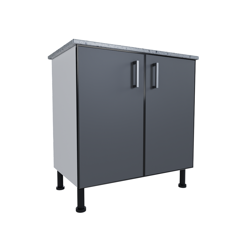 800mm width 2 Door Base Unit for ALFRESCO+ outdoor kitchens. 810mm high including 150mm adjustable feet. 590mm deep including compact laminate door with aluminium profile. 1 loose shelf included plus fittings pack with 4 legs and TeraBlack coated hinges for improved corrosion resistance.