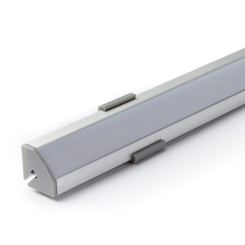 The corner profile is designed to fit neatly into any corner, ie. a breakfast bar or pelmet. The light emitted from the LED strip is directed by the shape of the profile and will shine at a 45° angle