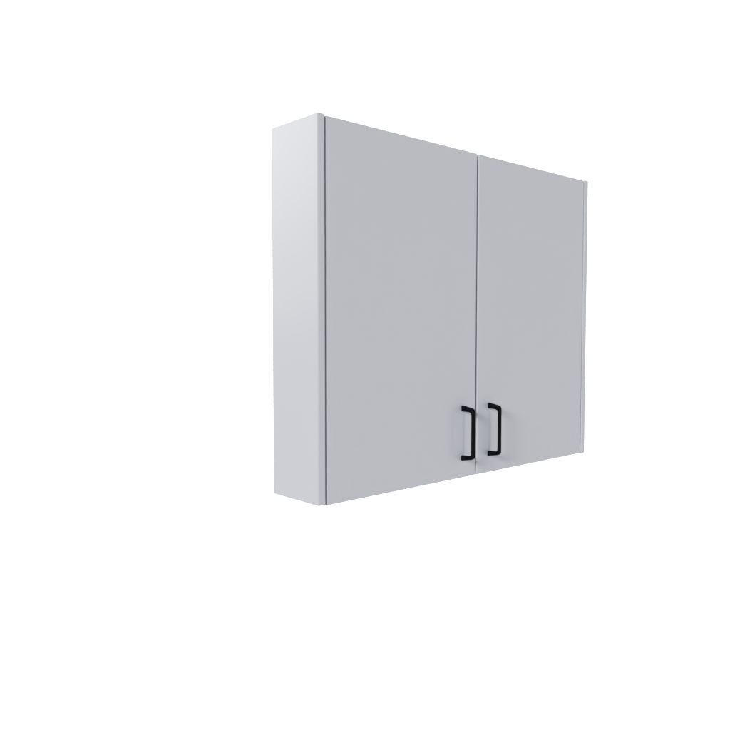 Assembled 2 door wall-hung shaver cabinet vanity unit with solid back panel. 810mm high with 1050mm width and 170mm depth in OptiMatt Premium Black. Includes soft close hinges.