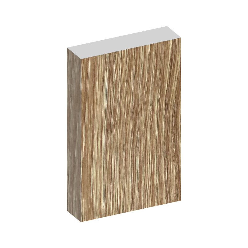 End panel in OptiGrain Riven Red Oak for floating wall-hung midsize vanity units. 610mm height x 459mm width x 19mm depth.