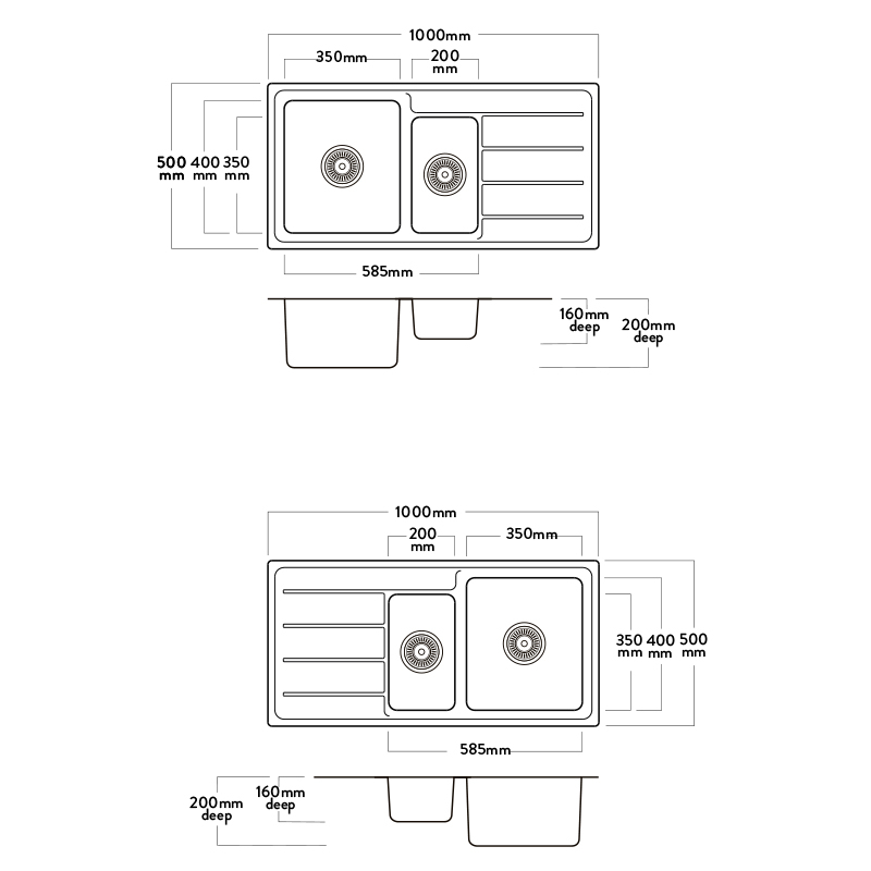 Left Hand Everglades Main Bowl, 1/4 Bowl and Drainer 39L