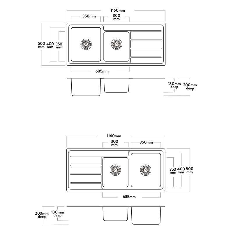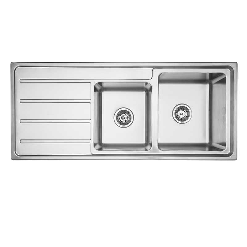 | The newest addition to the bowl and drainer line, the Everglades Range is a modern and stylish collection of sinkware 0.8mm 304 Grade Stainless Steel Laser edge Silk finish 28L Main bowl and 18L 3/4 bowl with drainer 25mm corner radius 90mm round basket waste included |