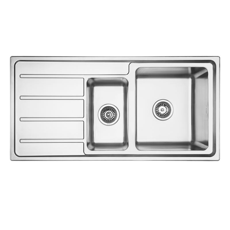 | The newest addition to the bowl and drainer line, the Everglades Range is a modern and stylish collection of sinkware 0.8mm 304 Grade Stainless Steel Laser edge Silk finish 28L Main bowl and 11L 1/4 bowl with drainer 25mm corner radius 90mm round basket waste included |