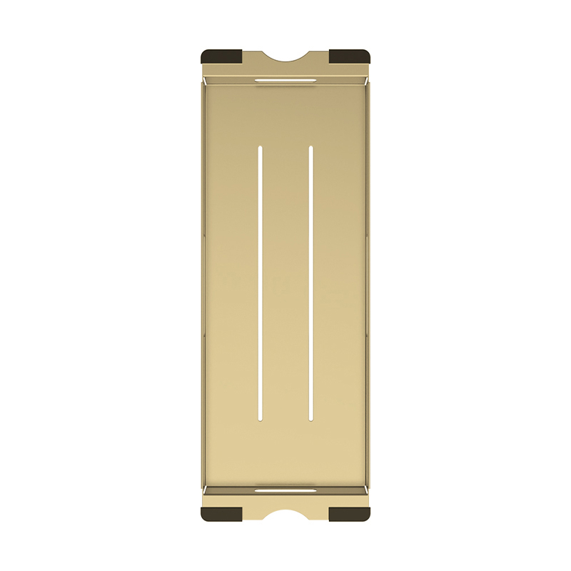 | Suits Hand Fabricated and PVD sinks Brass finish Sits over sink for extra prep space |